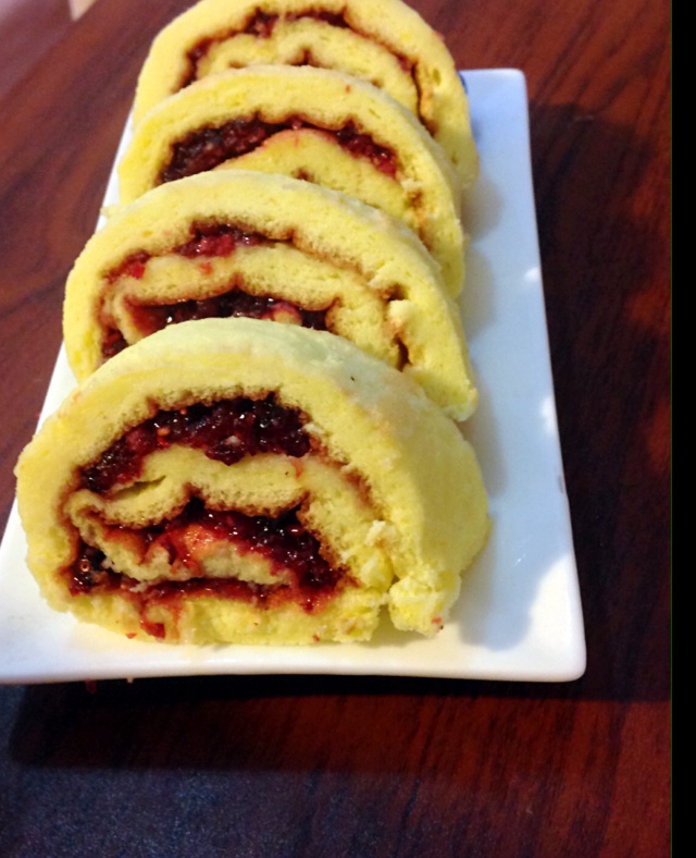 减肥君去屎吧 为了消耗我家的果酱和蔓樾莓。。。哎 我那拙劣的技术,家里没有油纸只有锡纸,蹭一下把我屌丝蛋糕的皮全部撕掉。...