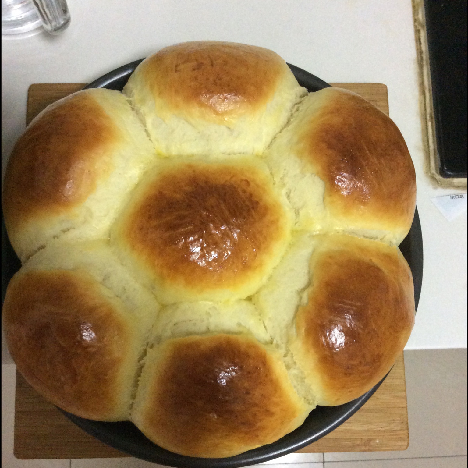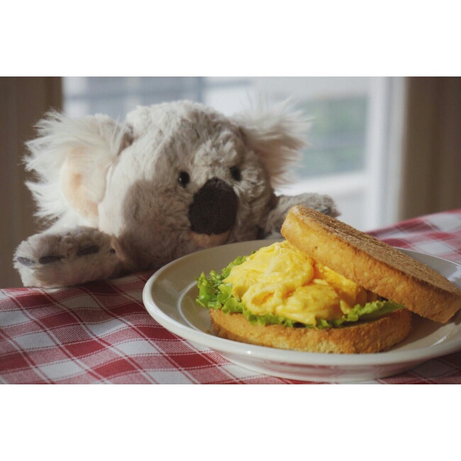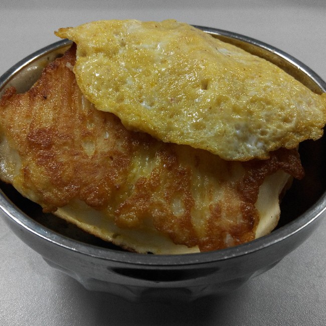 打鸡蛋时加入了少量蒜蓉酱替代盐,加火加大了,三片焦了五面。