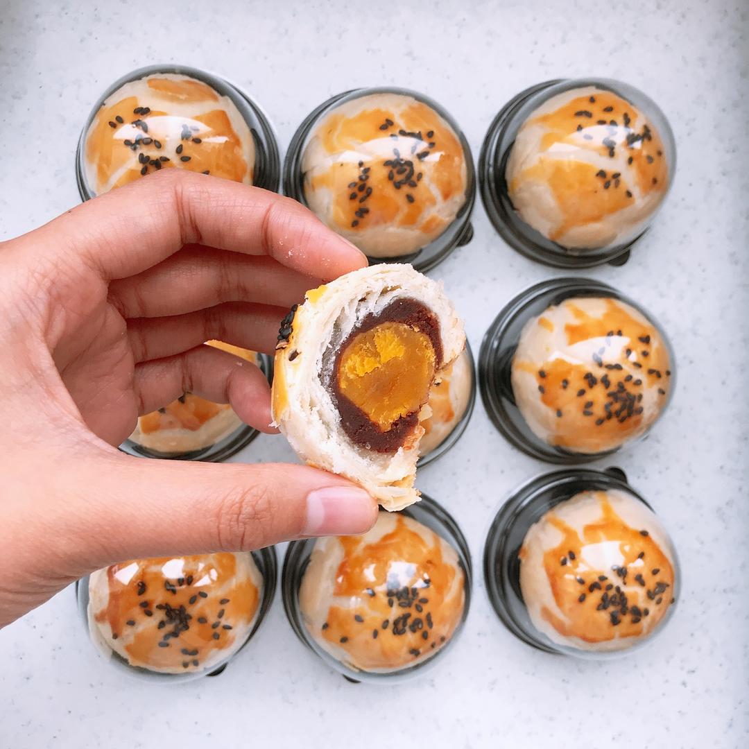 饼皮参考了传统蛋黄酥的方子,馅料是之前为了搞...