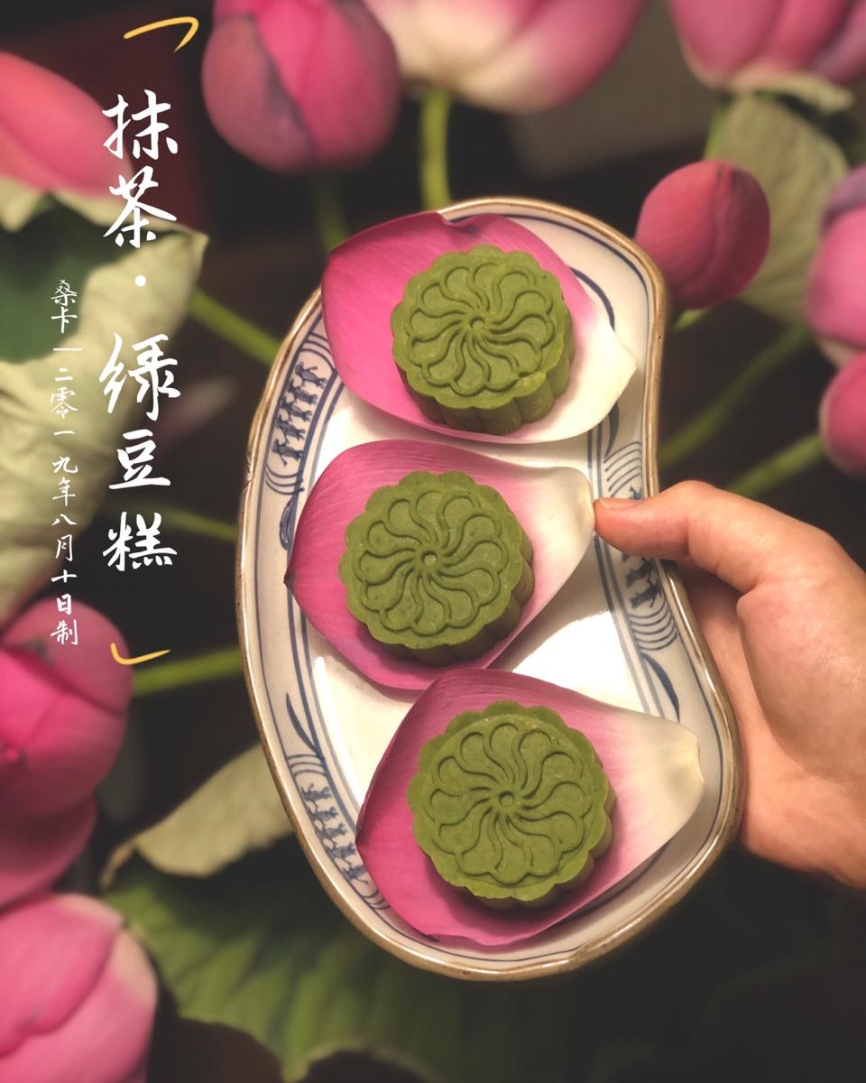 其中一份加八克抹茶粉。有抹茶粉的三十克一份绿豆蓉,包...