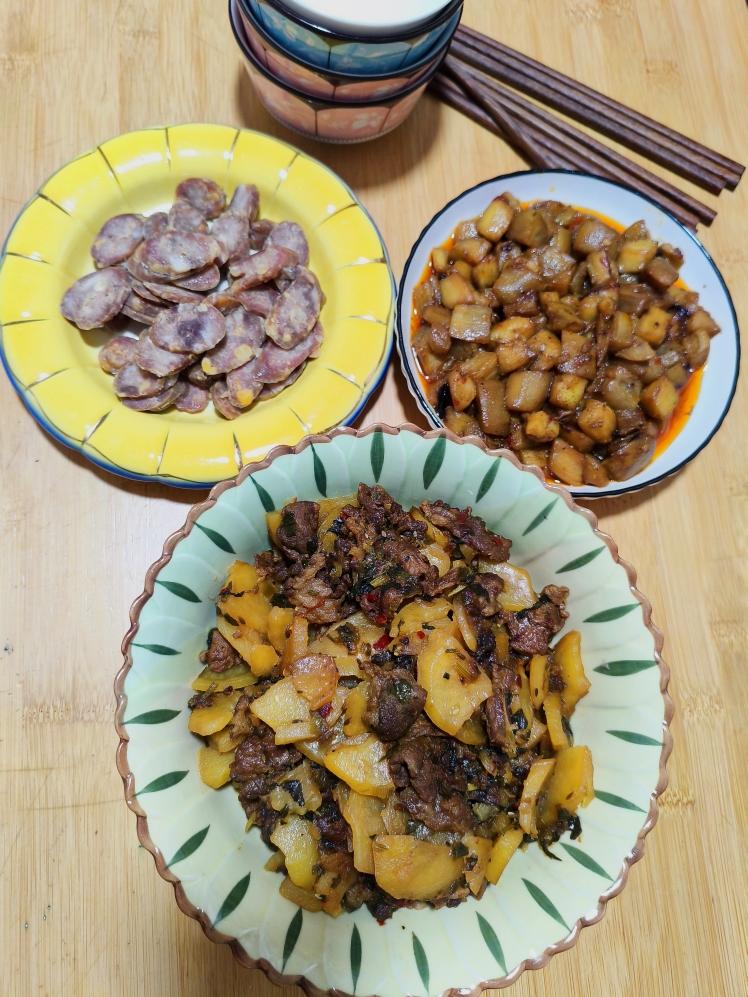 减脂午餐,牛肉蔬菜玉米粒,五香盐水毛豆,还有几粒煮菠萝蜜籽