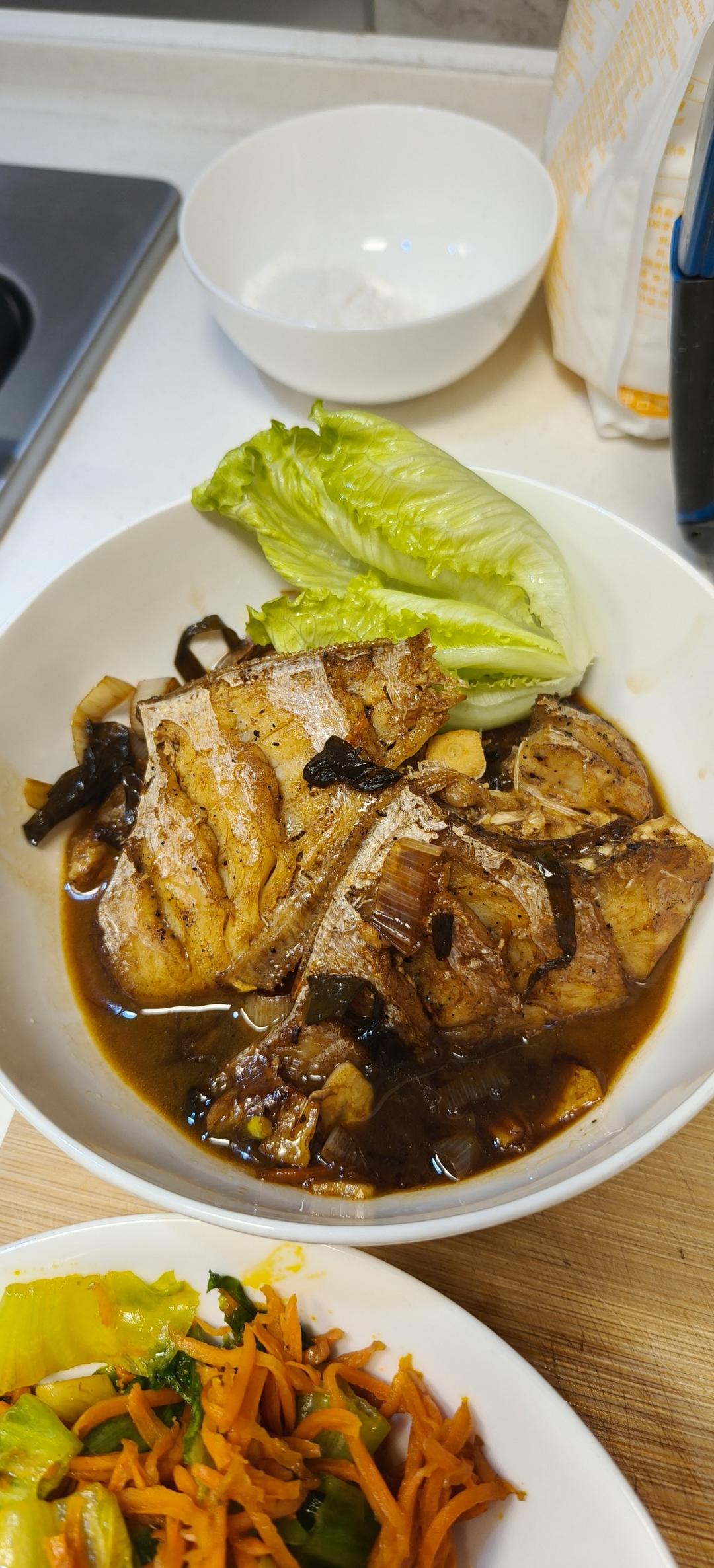 昨天晚餐,好吃的葱香扒皮鱼,用的陈年老葱油,咸香