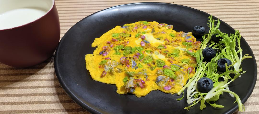 一年饕餮一次。有紫荆花,紫藤花,榆钱,加持的蛋饼,齿颊持久留香。