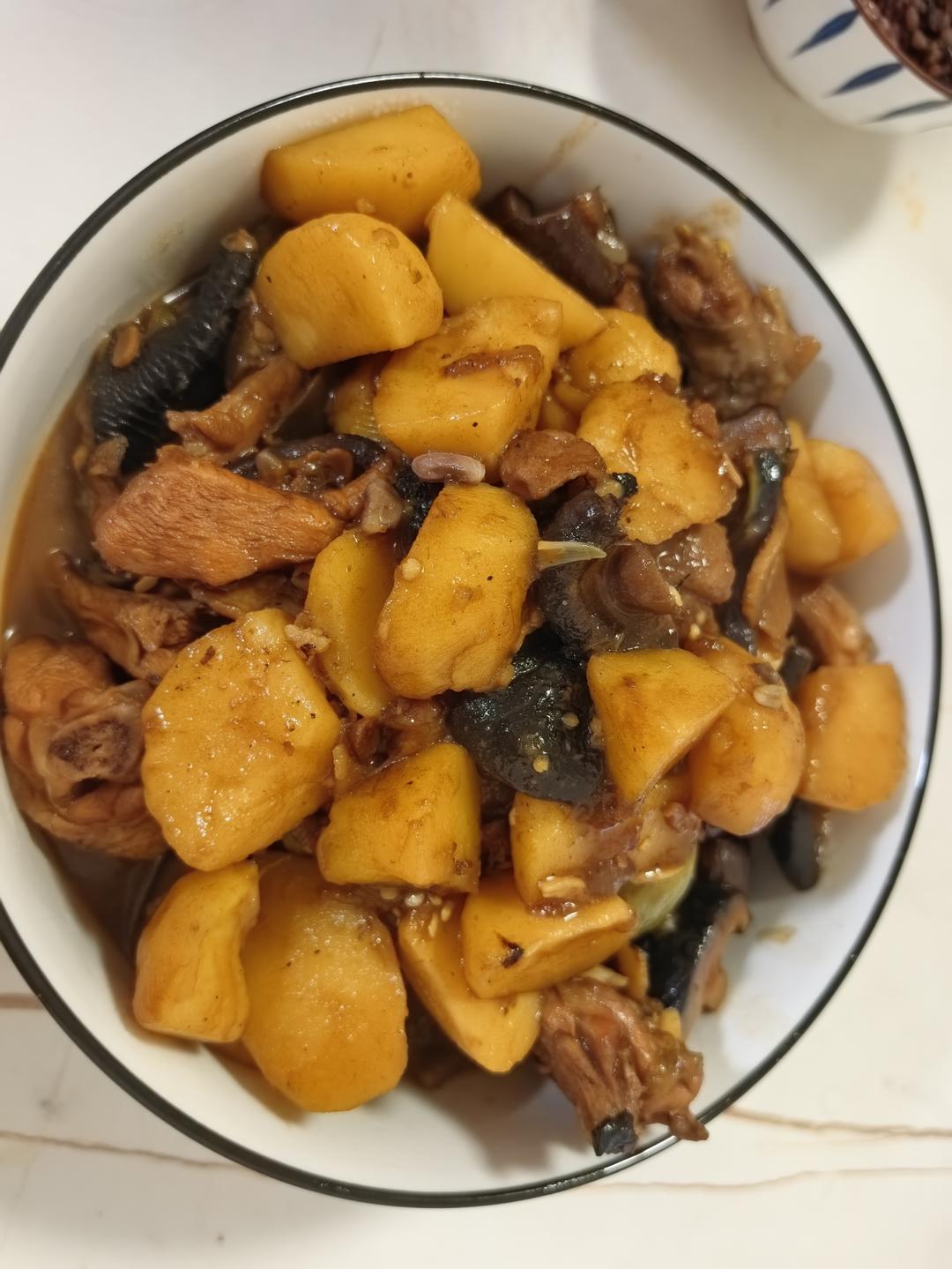 晚餐:东北风 之 小鸡🐥炖松蘑🍄。