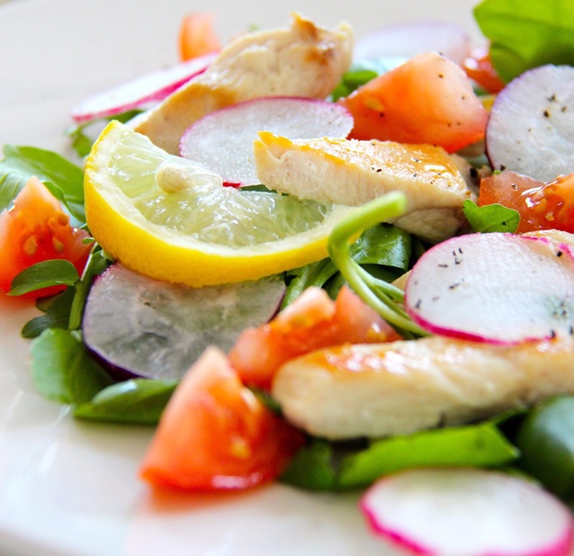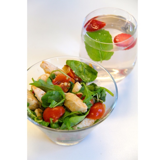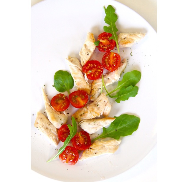 连着三天晚餐吃鸡胸肉沙拉 但是吃不厌~这个小番茄是跟鸡肉一起炒过的 非常juicy