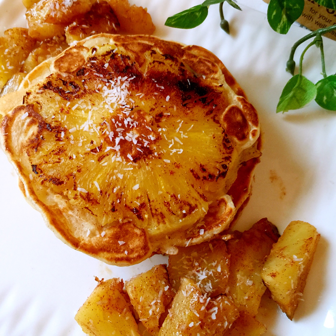 早餐做了“喵呜” 宝贝给我种草的菠萝松饼。 这绝对是松饼界里的霸王!煎过的菠萝好甜,好甜!煎的时候撒了一点肉桂粉,pan...