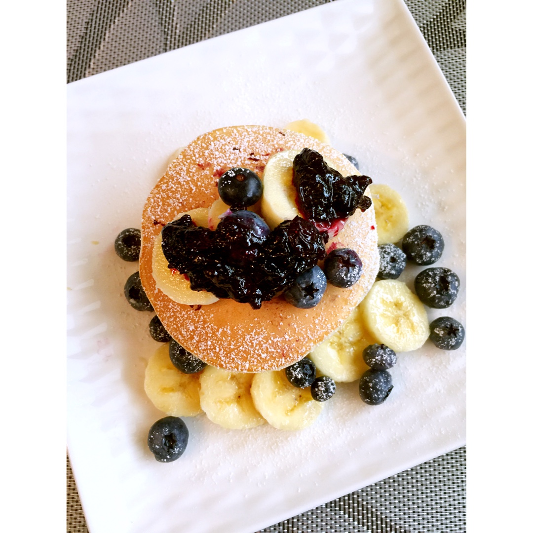 消耗家里的蓝莓。 搭配的自己做的蓝莓酱, 酸酸甜甜比枫糖浆好吃!