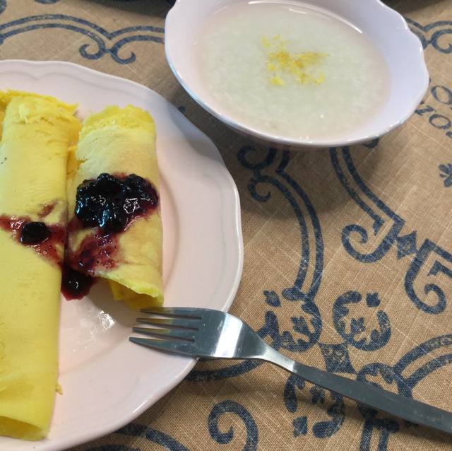 鸡蛋灌饼~菊花小米粥~