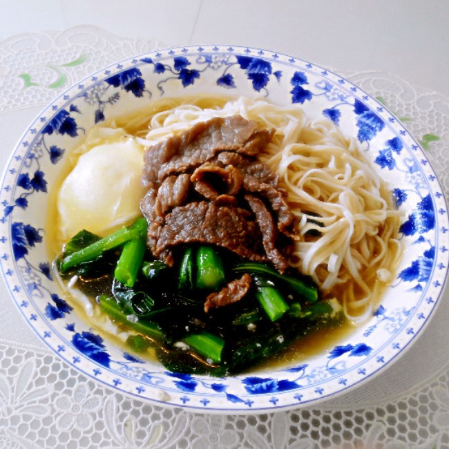 菜心牛肉鸡蛋面