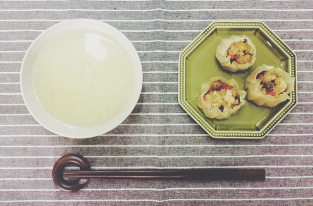 2015-02-04。早餐。超稀小米粥 & 烧卖。