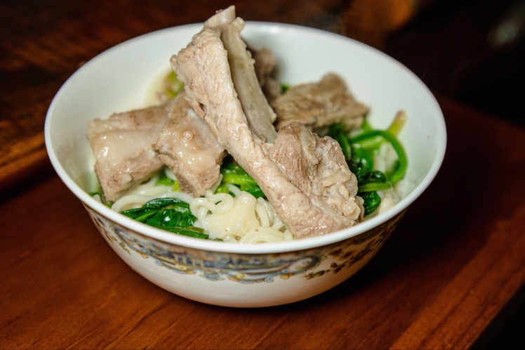 面条机自制排骨汤面。