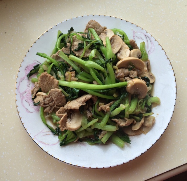 【蘑菇油菜炒肉】by粑粑
