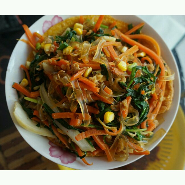 搭配什锦蔬菜和蛋皮