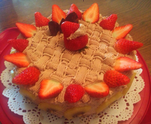 减糖了,烤了将近50分钟,表面开裂,高度也长得不够,勉强切了三片给姐姐做了生日蛋糕。新学会的裱花篮,简单易做。 #午餐•...