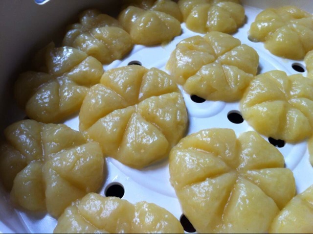 失败了,微波了10分钟还是糯糯的,估计是切好之后没有把淀粉洗掉.,下次再战!