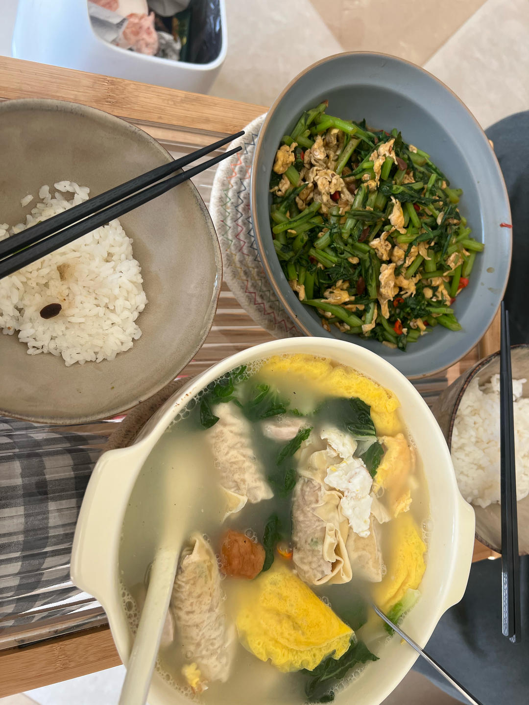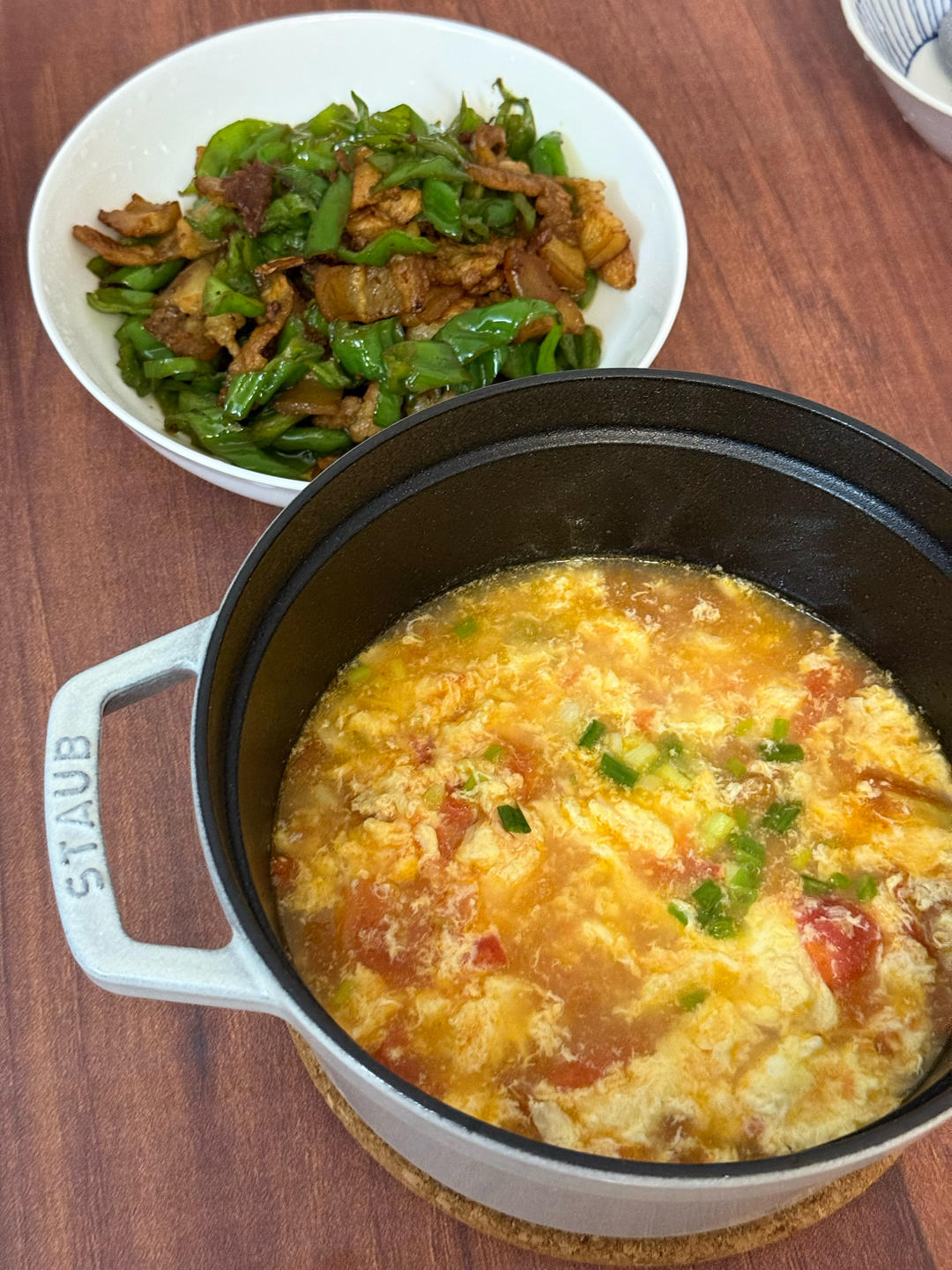 番茄鸡蛋汤,青椒炒肉