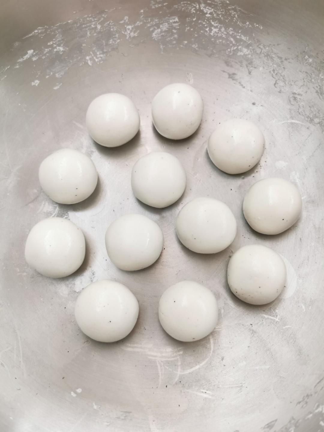 昨天做好的汤圆馅,今早起来包的汤圆。