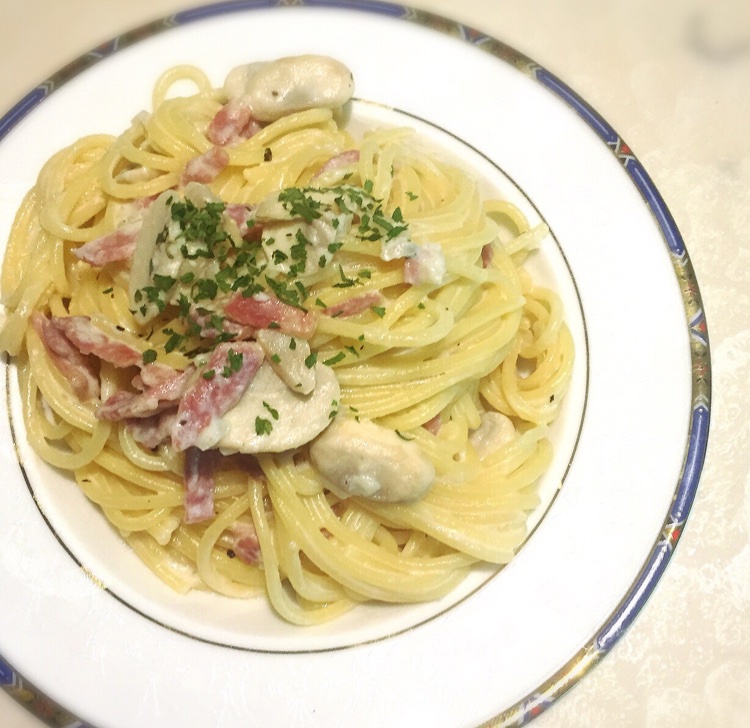 准备做奶油培根蘑菇意面,但没有奶油怎么办?于是找到了这个用牛奶和芝士的方子~加了罗勒碎和最后欧芹碎点缀~ #午餐•201...