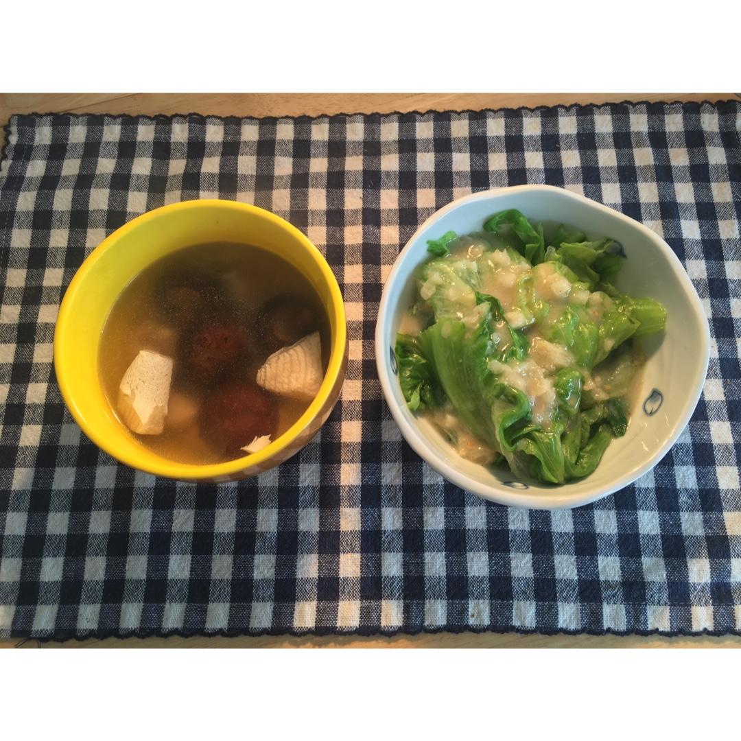 【香菇鰤鱼鲜汤+烫生菜叶和风沙拉】