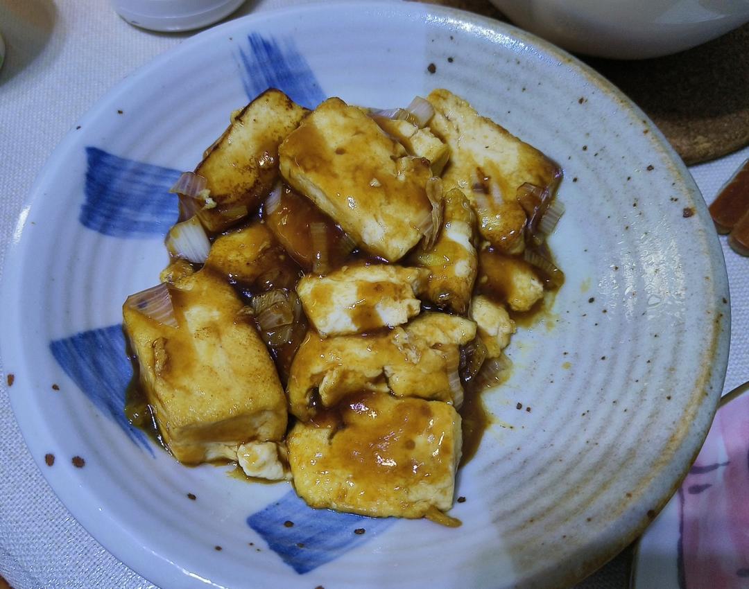 第二次做了,买回豆腐才发现家里没有老葱了,用半颗洋葱代替的,别有一番滋味。用洋葱口味偏甜,味道美滋滋。