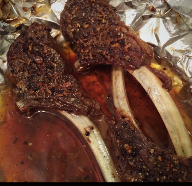 把高压锅炖出来的汁浇在羊排上,然后撒上胡椒孜然一起烤,烤出来外焦里嫩 味道很赞!