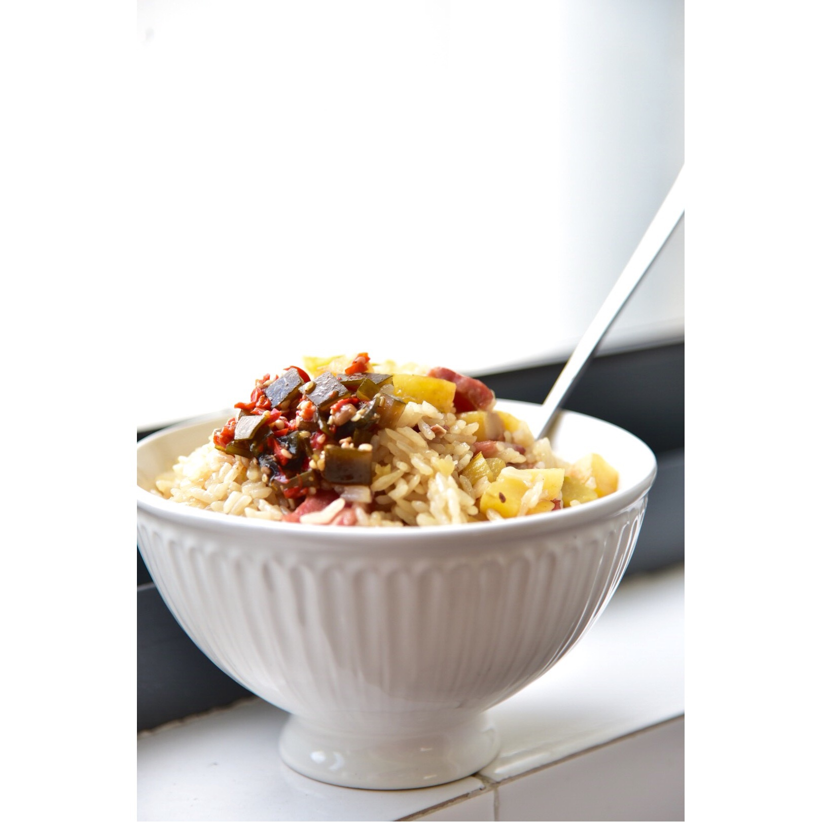 饭里还加了青椒和猪耳...
