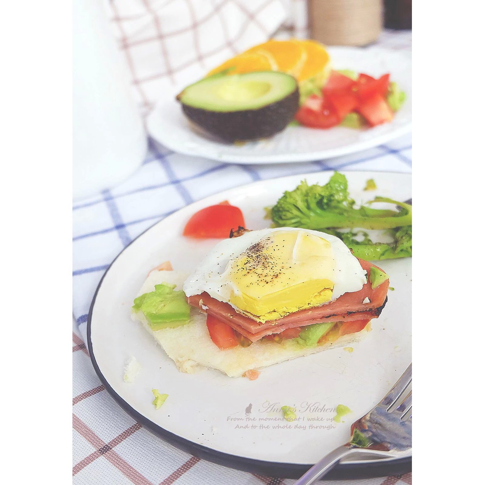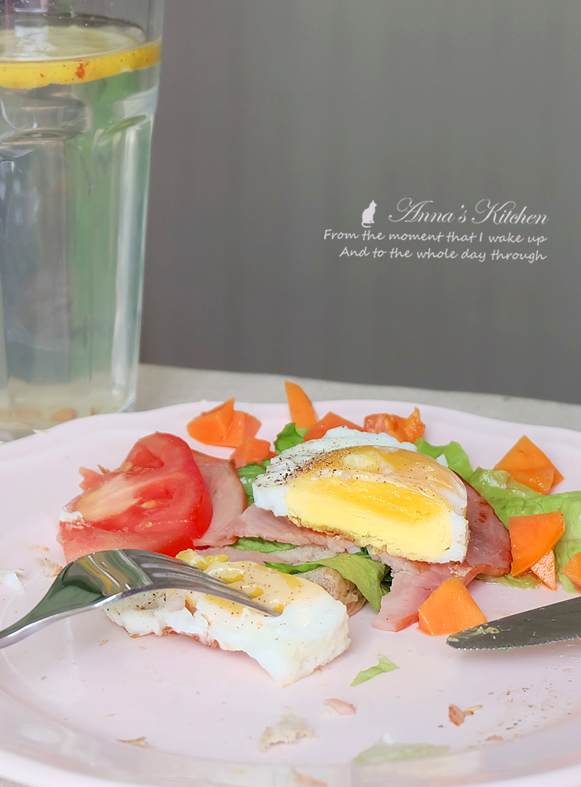 来个火腿2片,番茄一片,溏心煎蛋一个