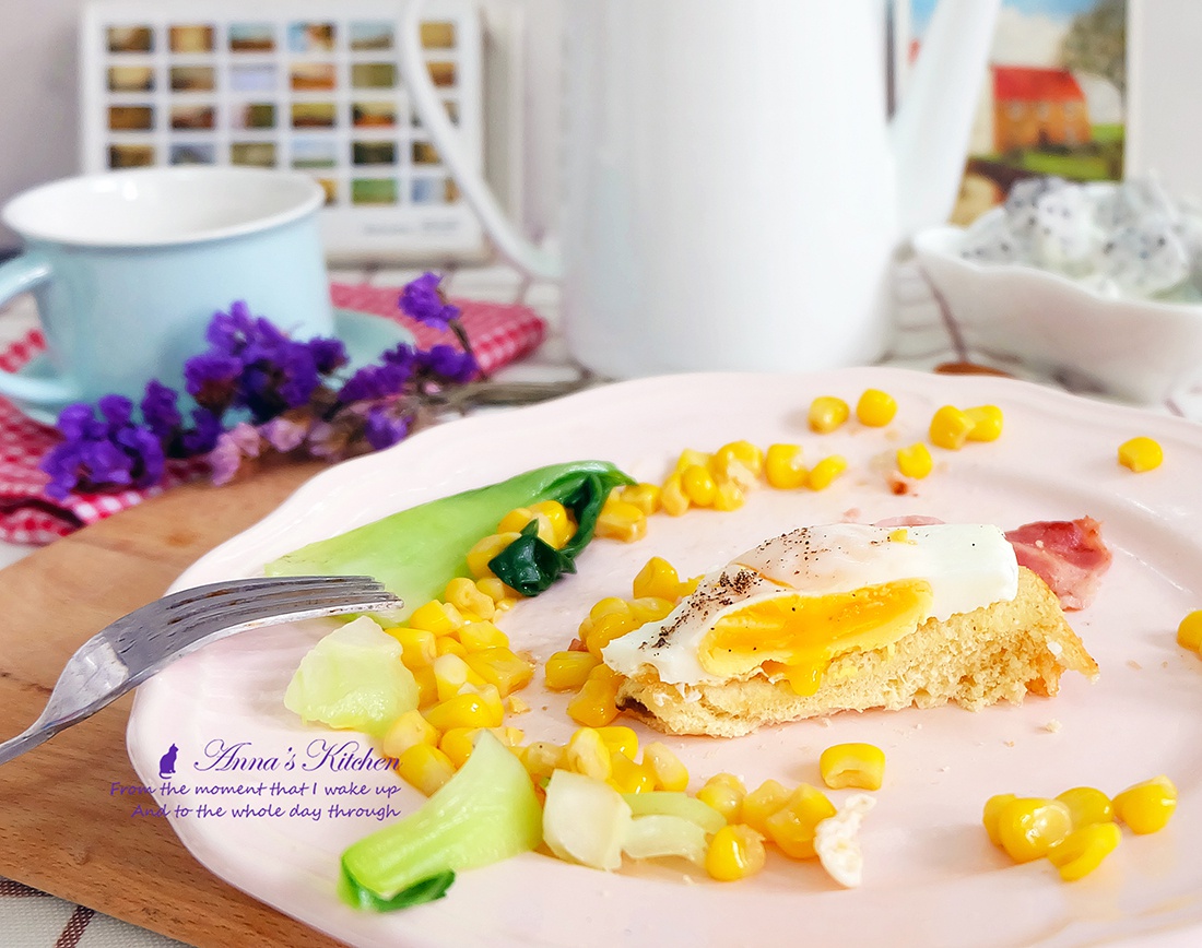 敷着面膜做了个快手早餐。