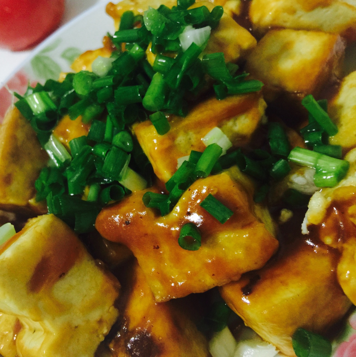 汁儿调少了,豆腐煎的还不够脆,下次可以切的薄一点,块儿再大一些,这样应该比较容易煎到那种外脆里嫩的感觉。