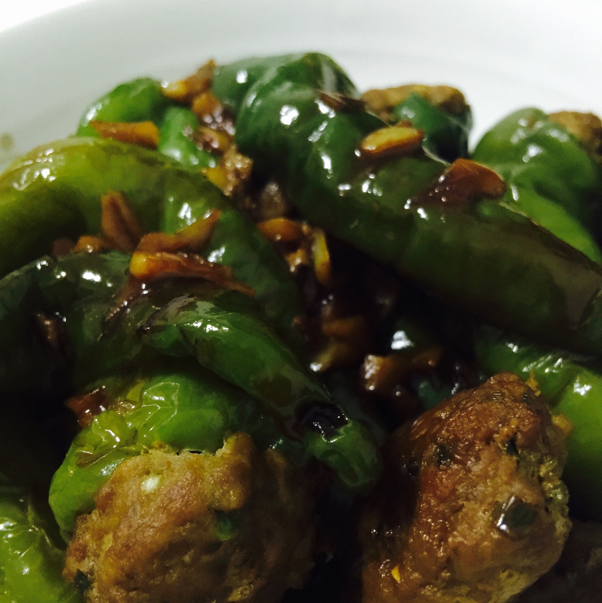 今天三道菜里最成功的一道!超乎想象的美味~~~选择螺丝椒虽然塞肉很困难,但是辣辣的真的好过瘾。不枉费我为这道菜花了这么多...