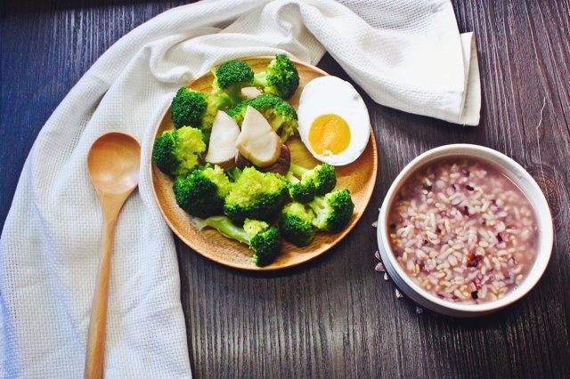 紫米糙米粥, 白灼西兰花 咸蛋