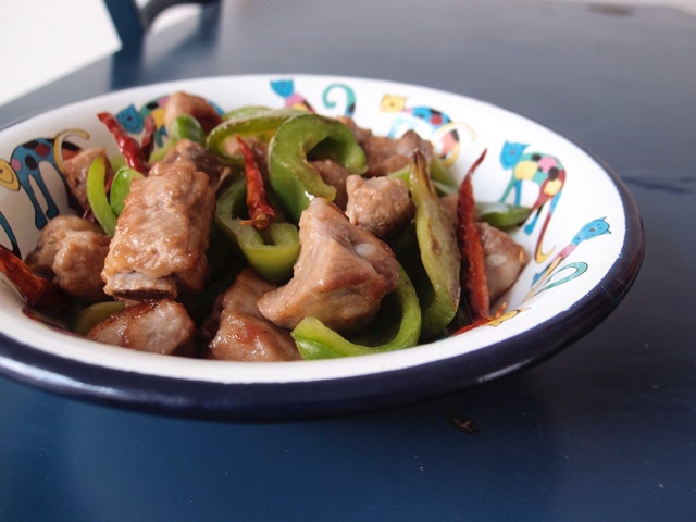 没买到青椒用的柿子椒。一开始淀粉裹多了,下锅的瞬间景象十分壮观=w=