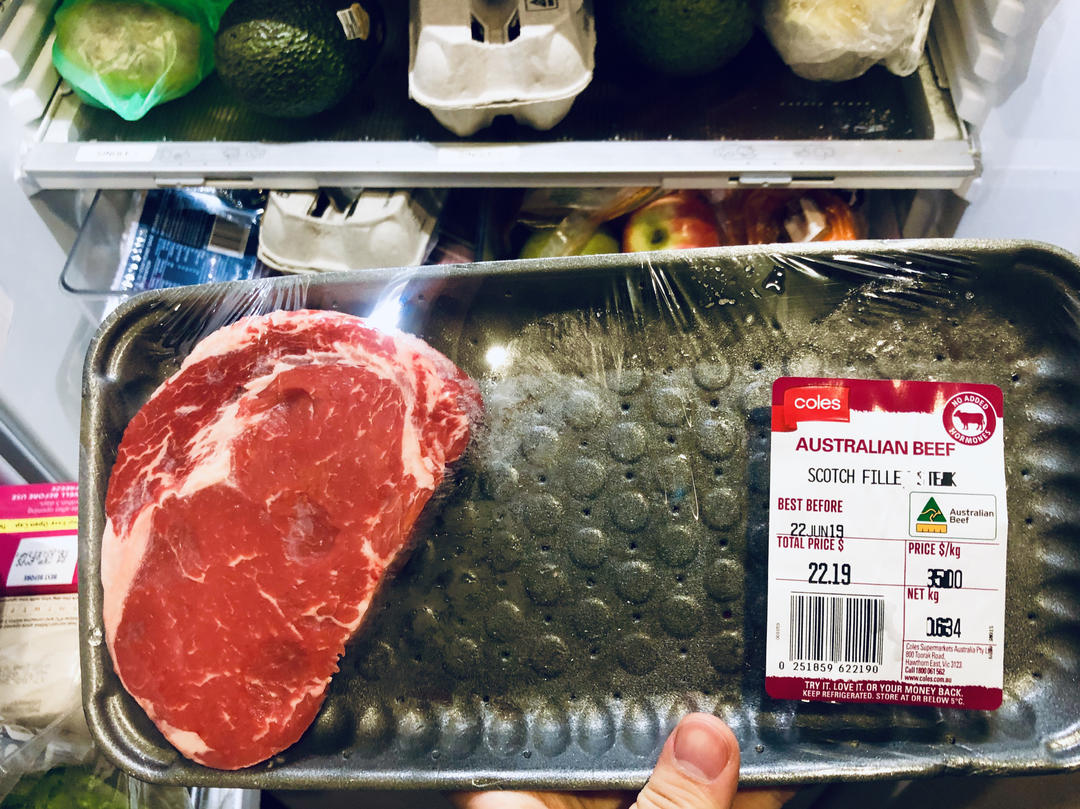 便宜又好吃的Coles卖的菲力牛排。煎一下就好。建议不要超过五成熟了