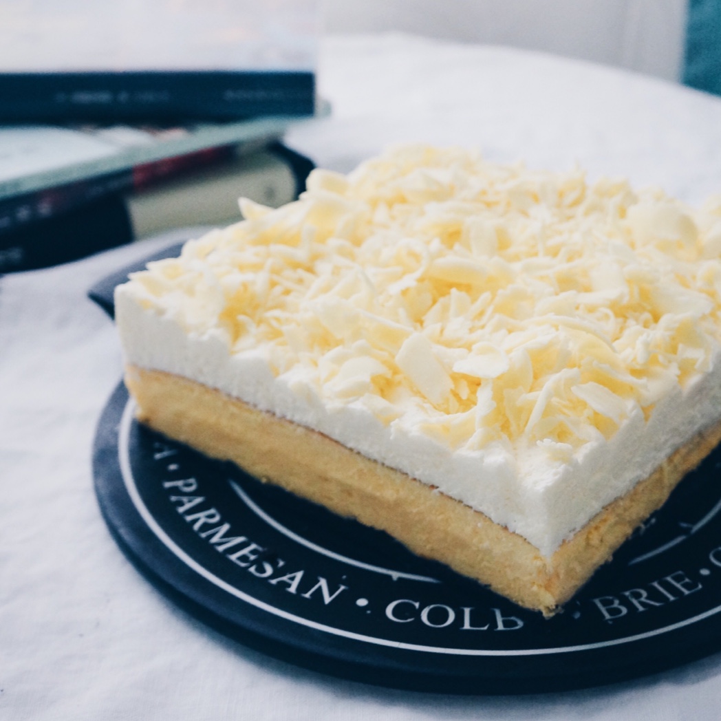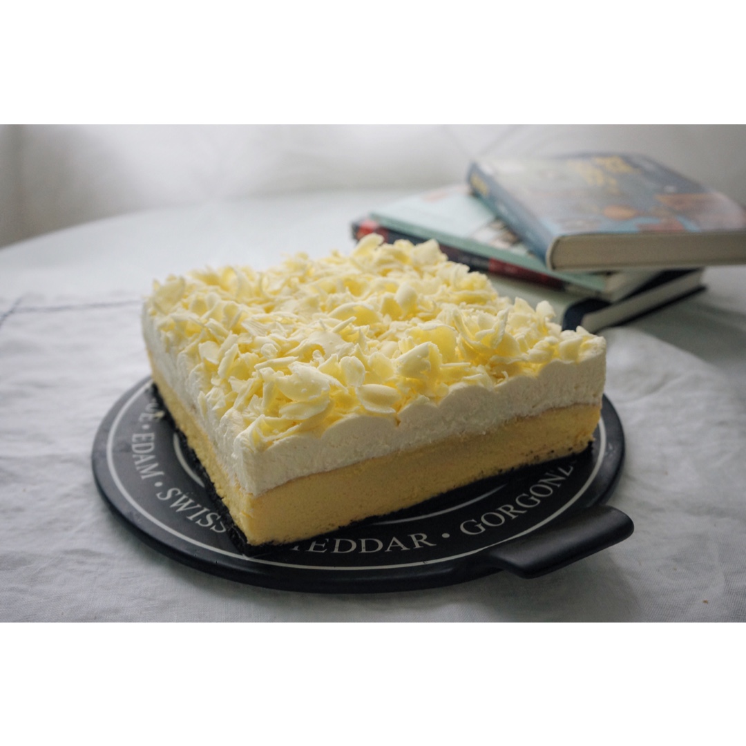 其实没有直接在饼底上倒入面糊再烤,是压好饼底就放上做好放凉的轻乳酪蛋糕,然后挤入奶油,撒上白巧克力,冷藏后切边。 #午餐...