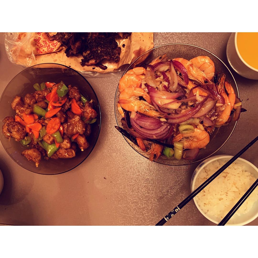 今日晚餐:溜肉段🥢、沸腾虾🦐铁板鸡架❤️