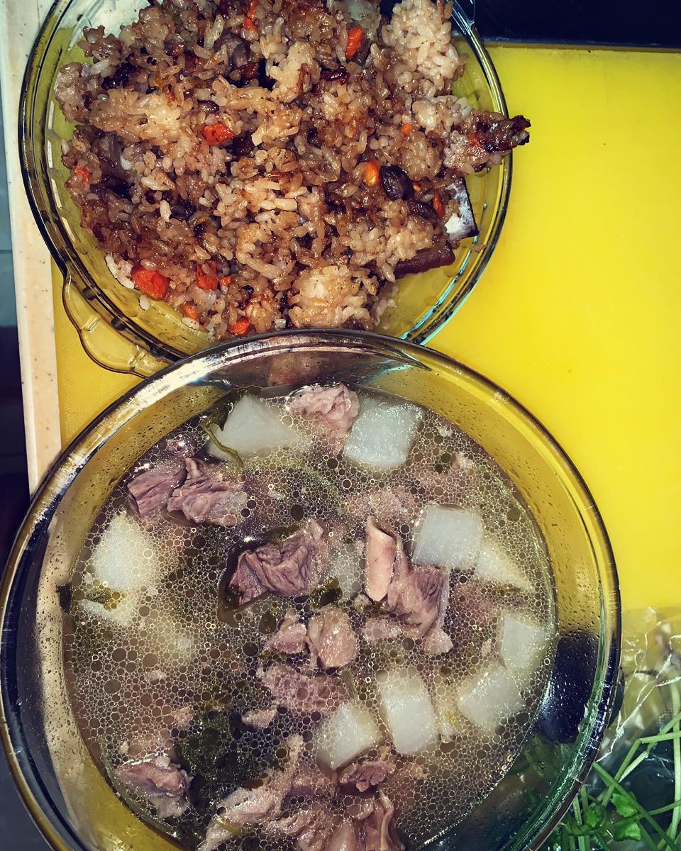 今日晚餐萝卜牛肉、排骨焖饭。老公吃多了