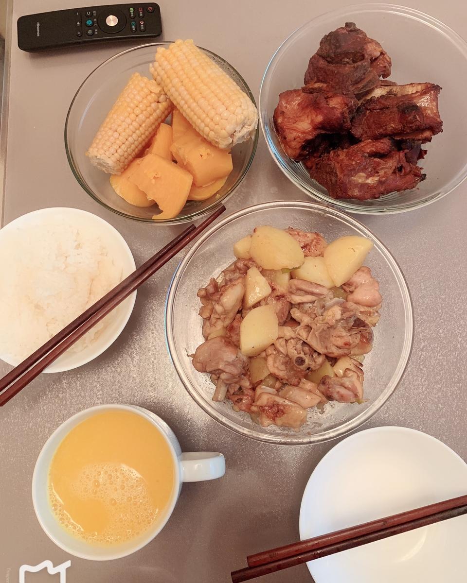 酱骨头、地瓜玉米、鸡腿炖土豆🥔
