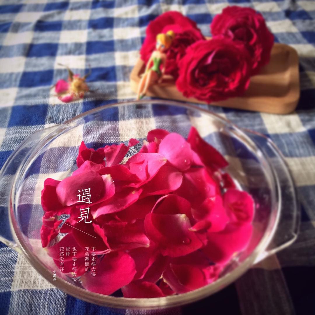 去朋友的园子自己采回来了食用玫瑰,一瓣瓣的挑选、浸泡~等它们晾干了就开始做玫瑰花酱了~