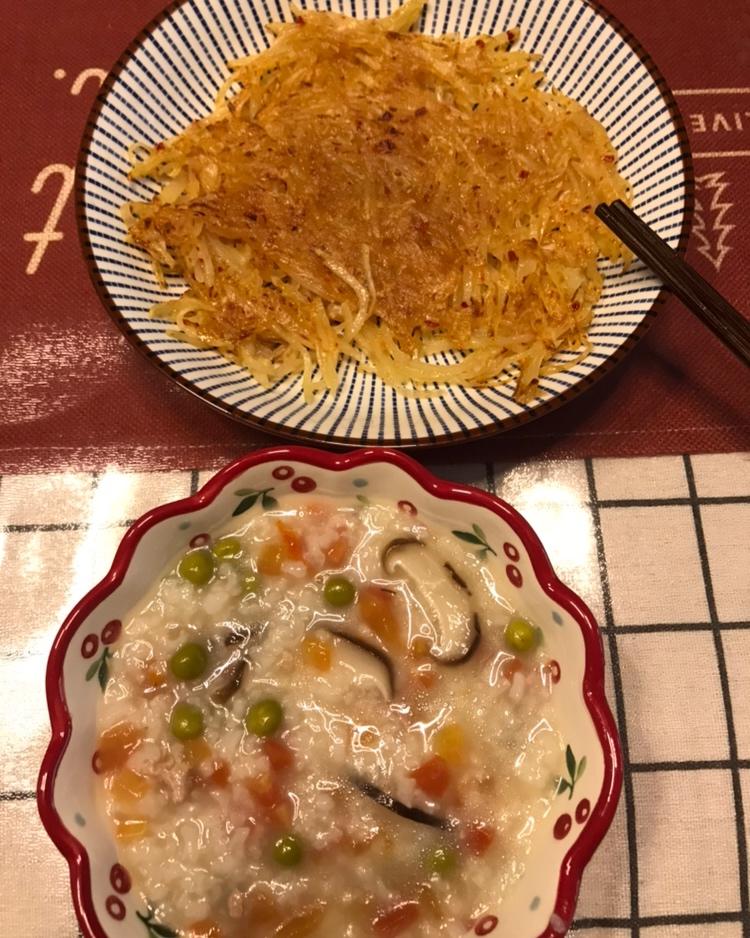 干煸土豆丝和蔬菜粥