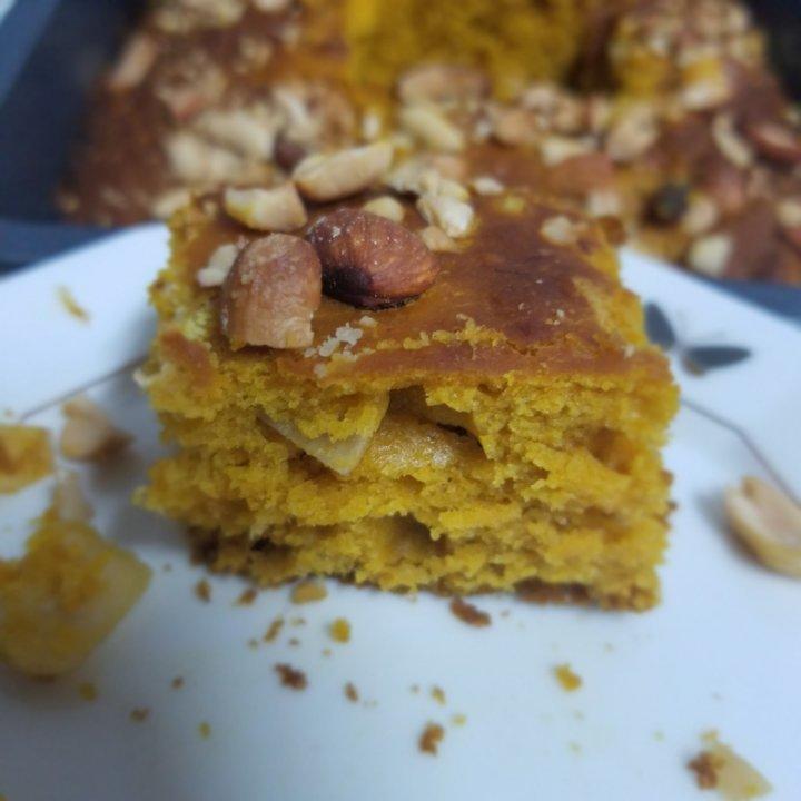 有放椰子脆片在面糊里,烤出来表面颜色深,但切开里面一看金灿灿的,口感蓬松,黏度也刚好,感谢方子!