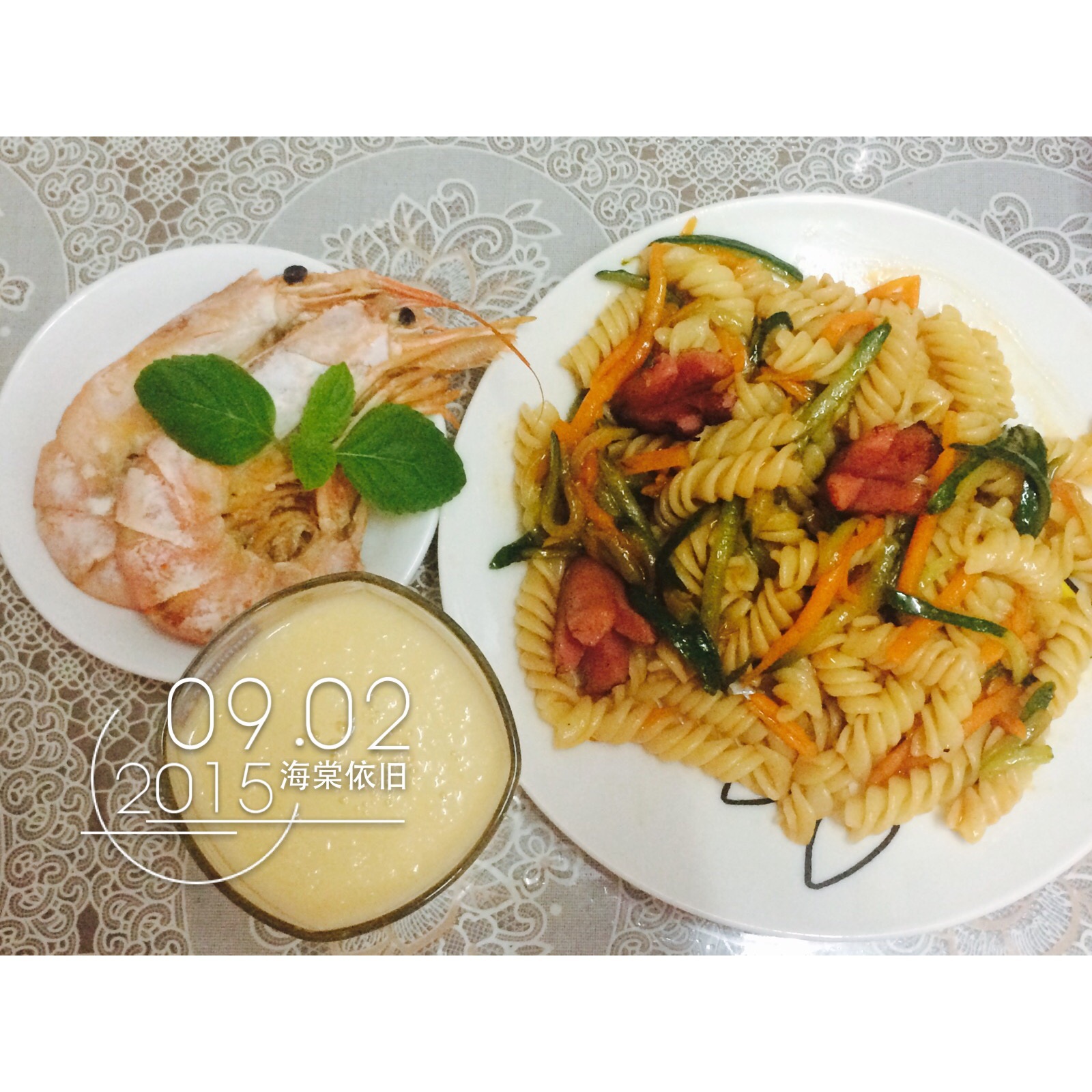 水果奶昔+茄汁意面+焗虾