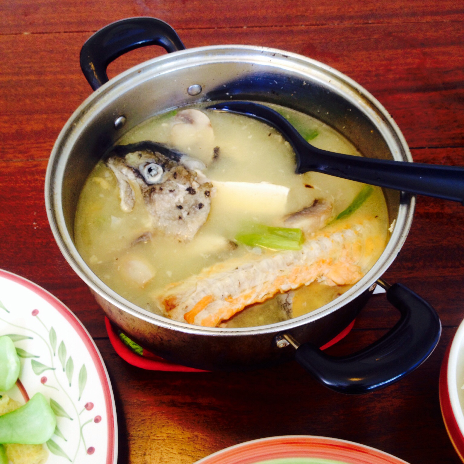 三文鱼头比三文鱼便宜一半,烧汤超级鲜~ 放点蘑菇,比豆腐还好吃哦~