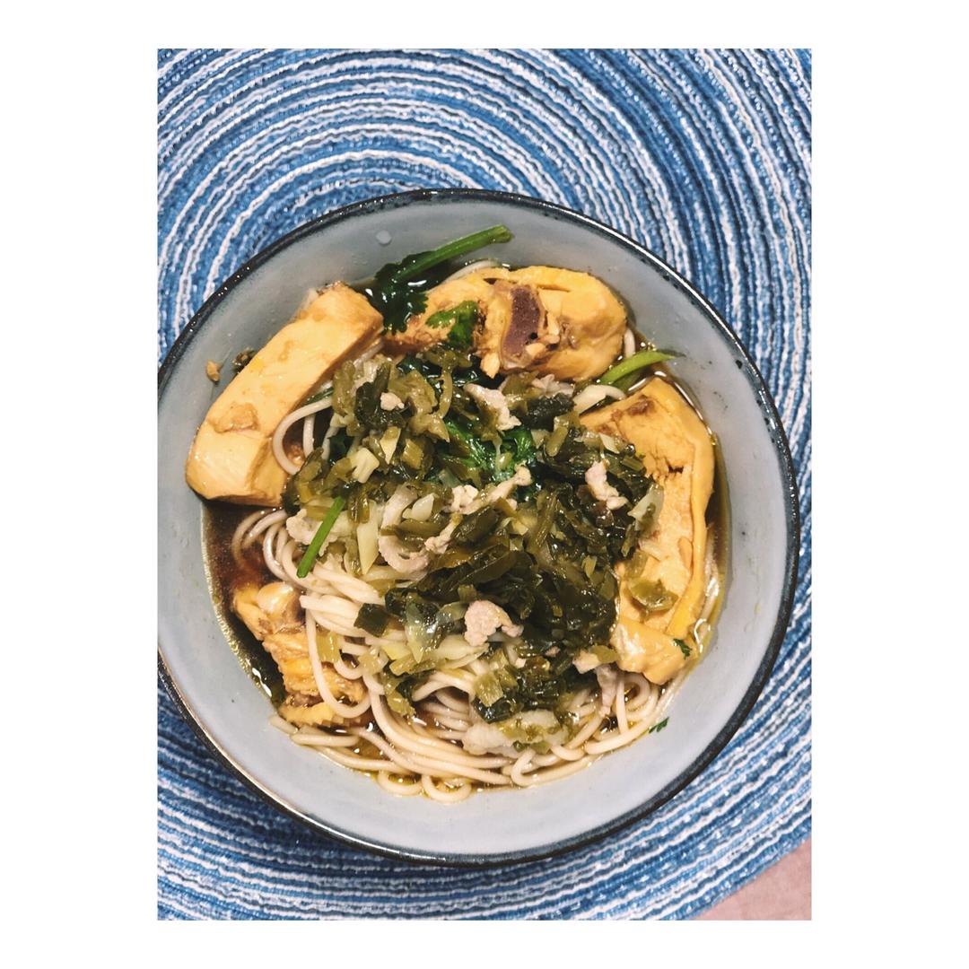 雪菜冬笋肉丝面+三黄鸡