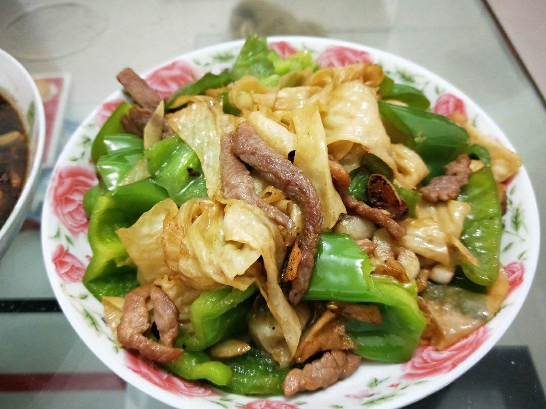 肥肠青椒炒豆皮