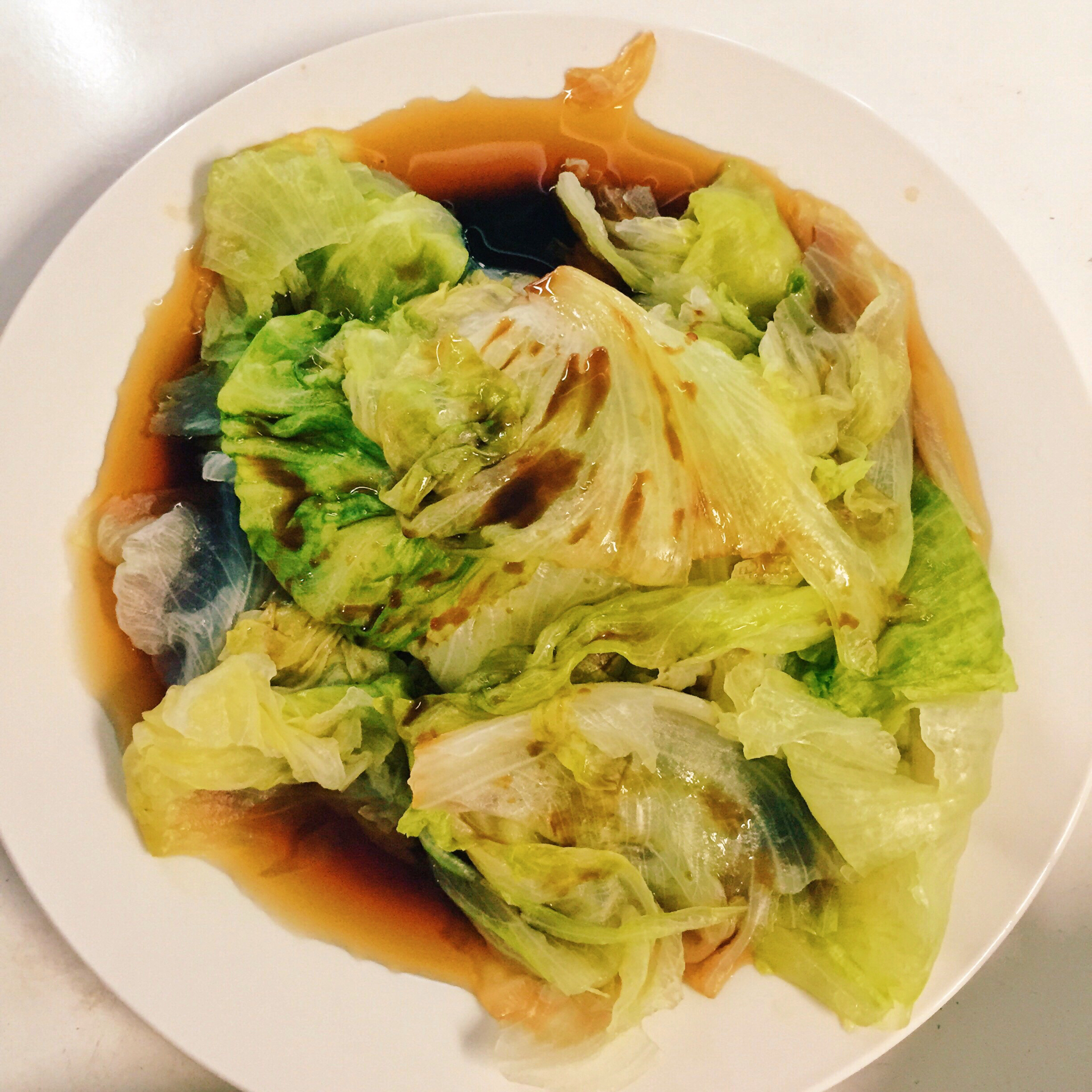 蚝油生菜,随手拿了一瓶寿司酱油来调,味道颇不对囧