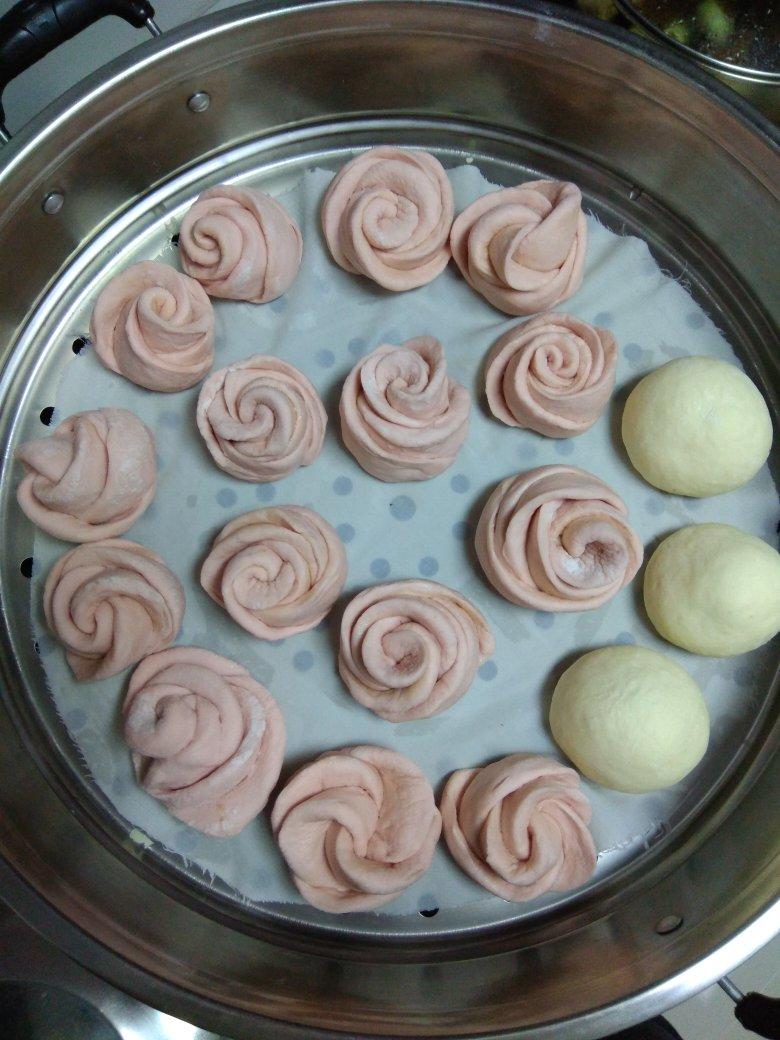 莧菜汁玫瑰花卷 蒸之前粉粉滴 蒸之後粉色去無蹤