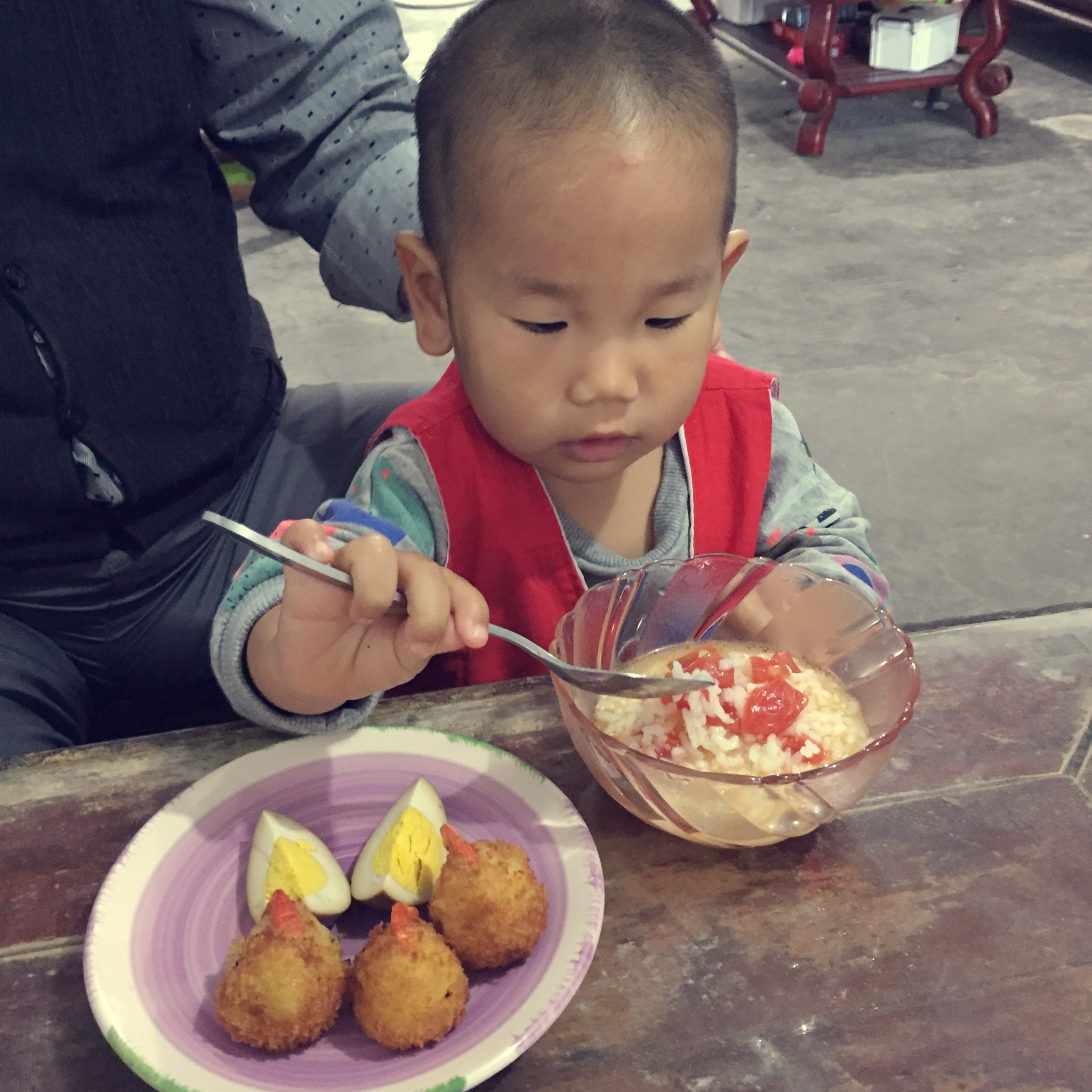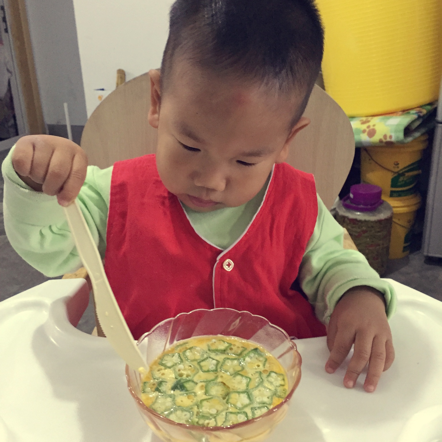 配方奶+秋葵蒸蛋……他不爱吃啊不爱吃,又补了点蛋炒饭!!