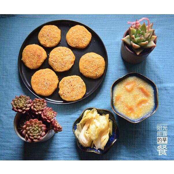 今日早餐 小米红薯粥、红薯饼、泡菜。这段时间的肉肉颜色挺美,很...