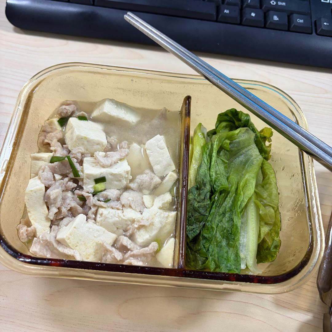 上班忙到没法带饭的时候,只能热片面包带来,配食堂的菜。腐竹和肉沫炖蛋。