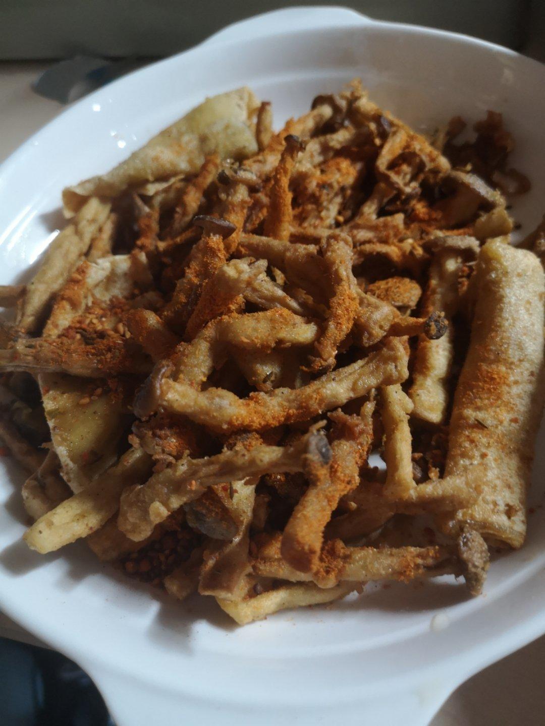 嘿嘿,标签上写的是真x菇,我也不知道,就按着方子炸了,加了辣椒味椒盐调料,好次!